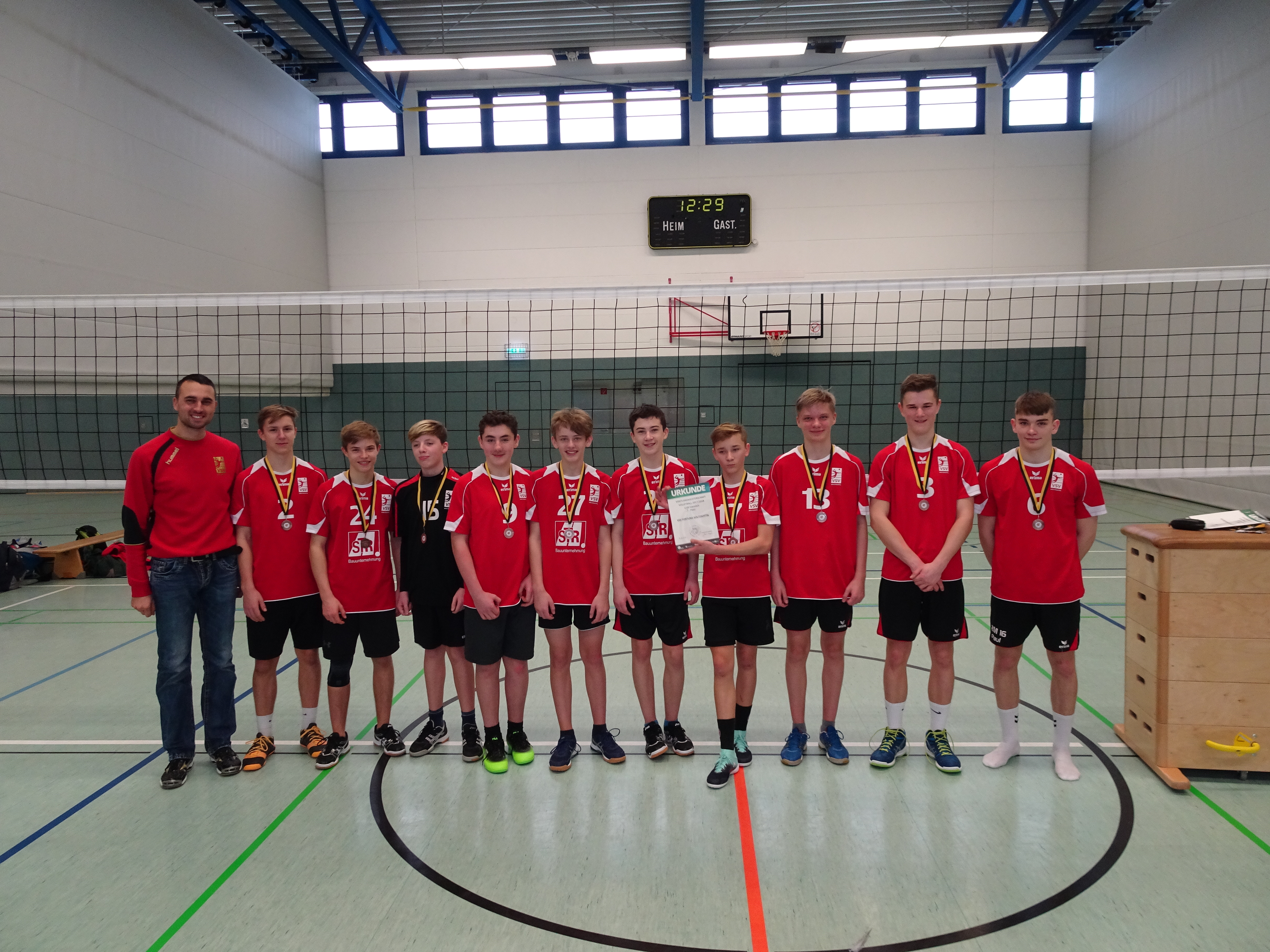 Zum letzten Spieltag der Volleyball Vogtlandmeisterschaft U18 männlich in der Reichenbacher Turnhalle Cunsdorfer Straße wird der VSV Oelsnitz seiner Favoritenrolle gerecht und sichert sich mit zwei 3 zu 0 Erfolgen gegen die jungen Teams vom VSV Eintracht Reichenbach und VSV Fortuna Göltzschtal den Titel.